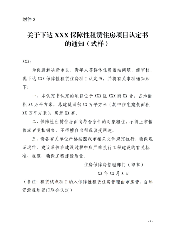 关于规范保障性租赁住房项目计划及认定管理工作的通知