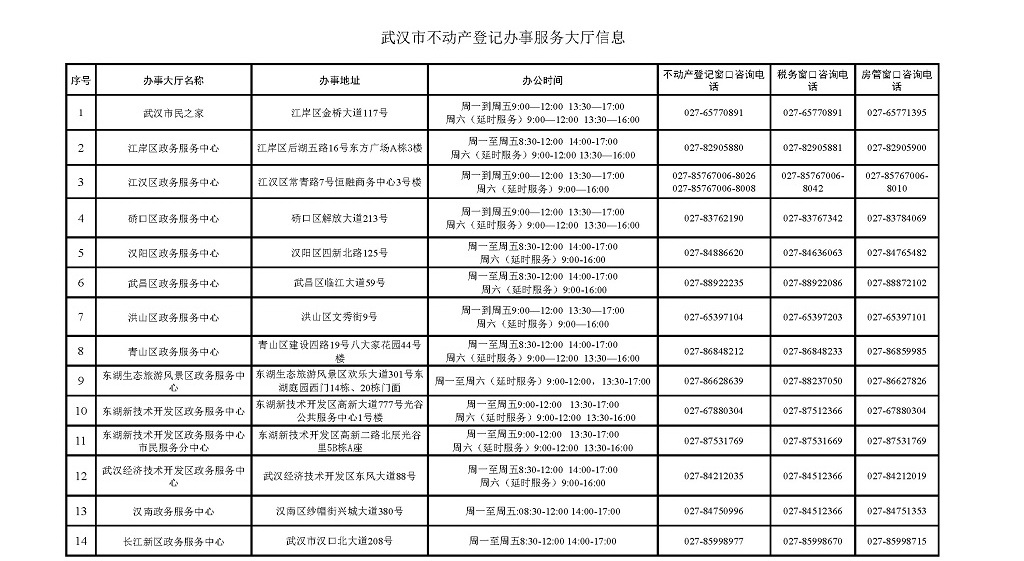 武汉市不动产登记办事服务大厅信息