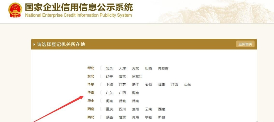 2、选择营业执照登记机关所在地。