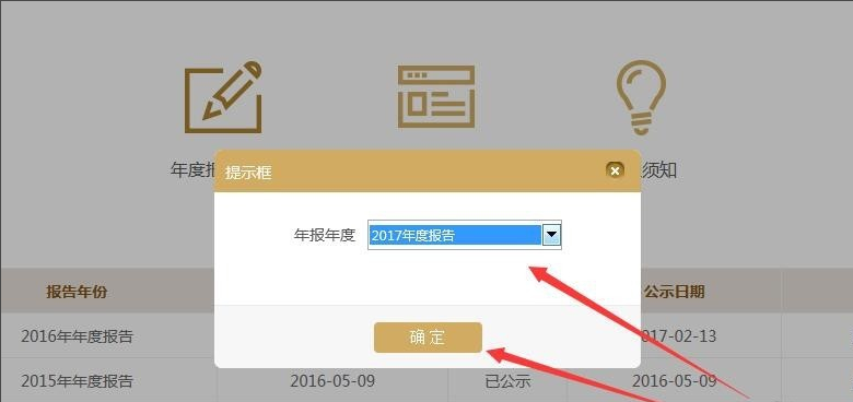 5、点击后会弹出一个对话框,选择您需要填报的年度后点击确定即可。