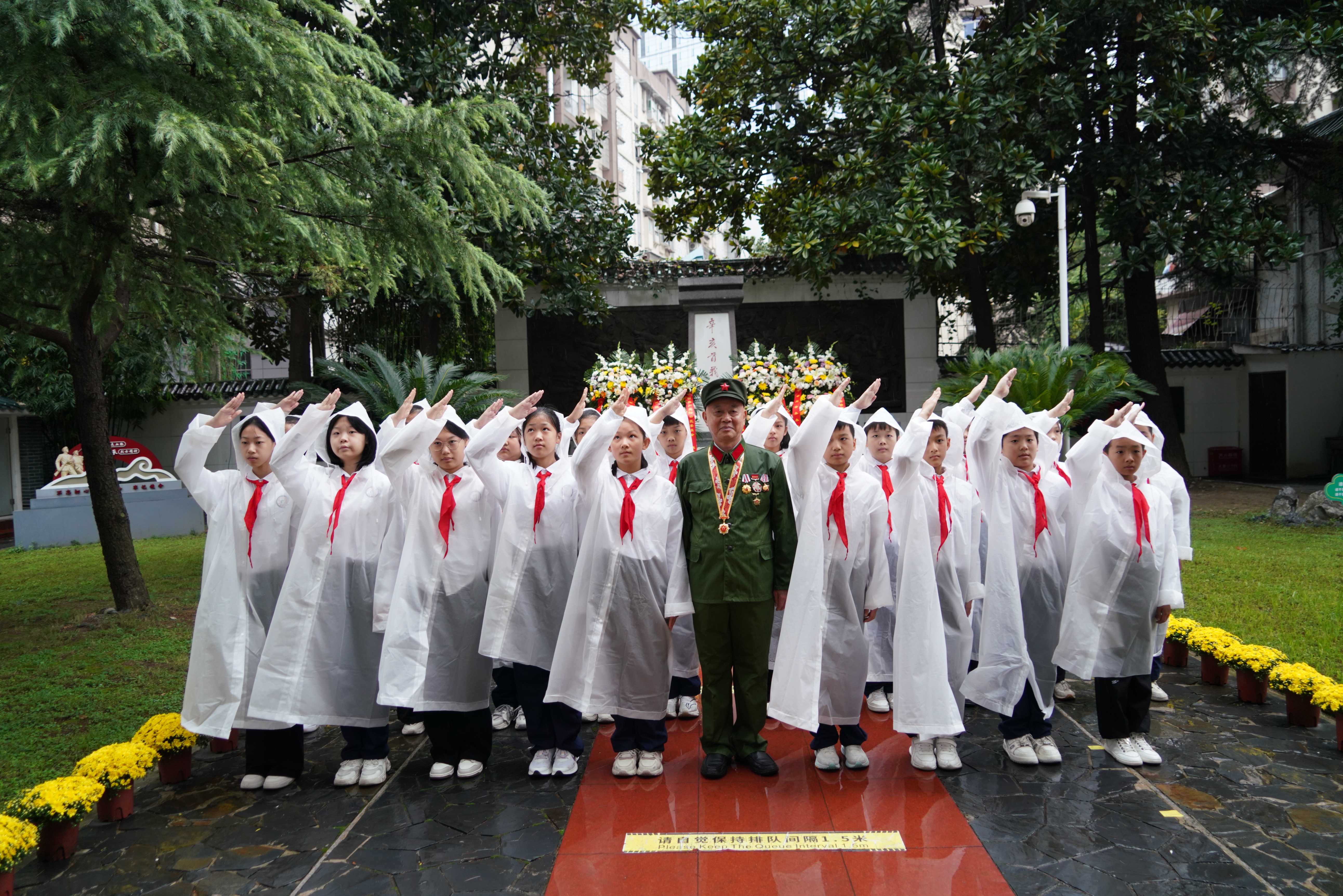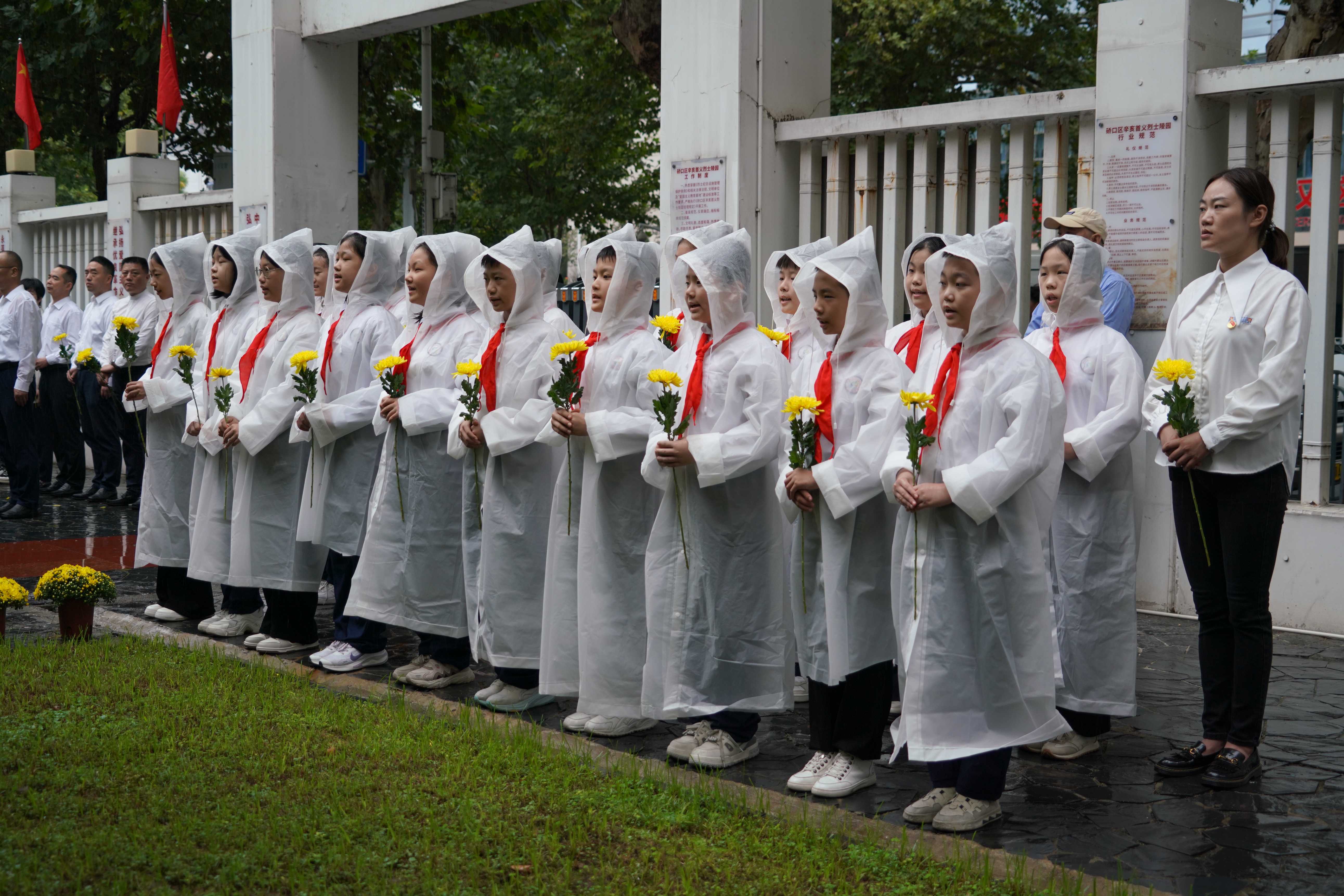 默哀结束后,20 名少先队员代表整齐地排列在烈士纪念碑前,他们齐声唱响队歌,用歌声传递着对革命先烈的崇高敬意与怀念之情,唱毕他们动作标准地行少先队礼。