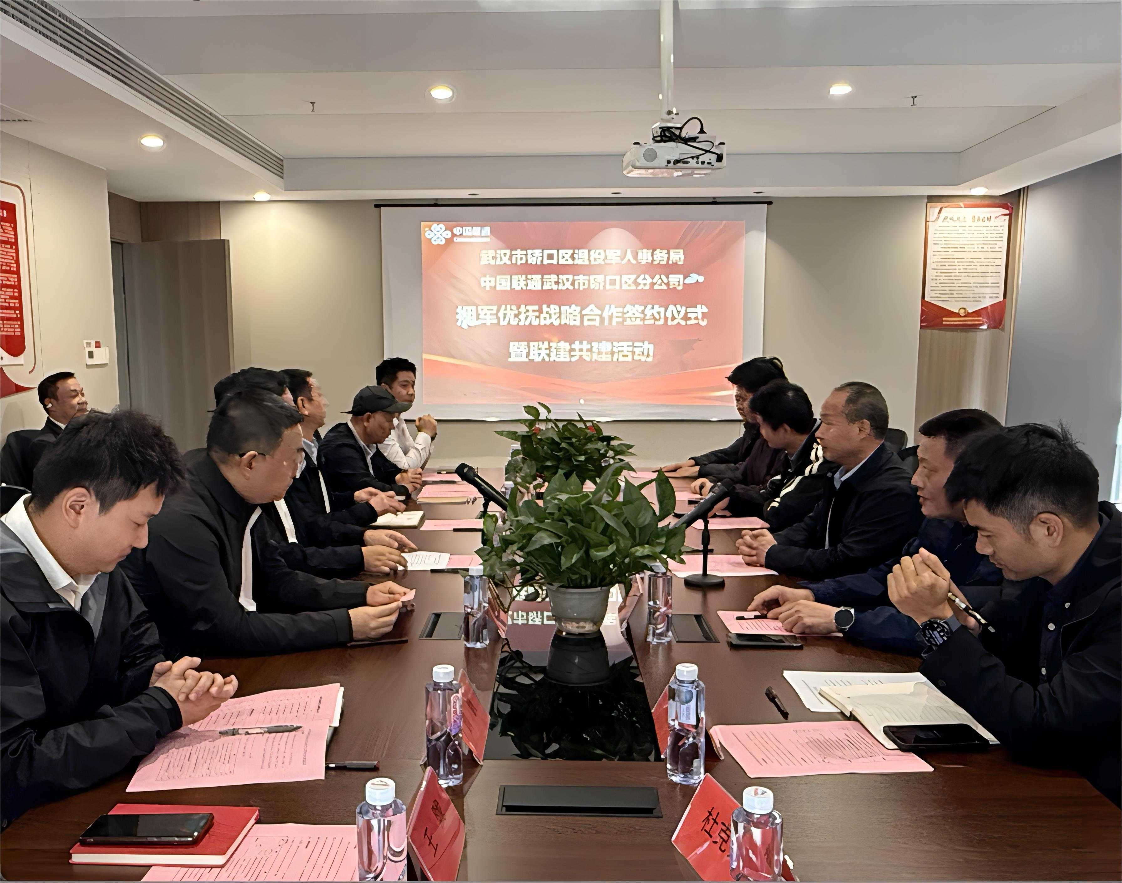 10月29日下午,硚口区退役军人事务局与中国联通武汉市硚口区分公司签订拥军优抚合作协议,共同谱写硚口拥军优抚工作新篇章,并在协议签订后举办党建联建活动会,双方领导班子成员、党员干部参加活动。