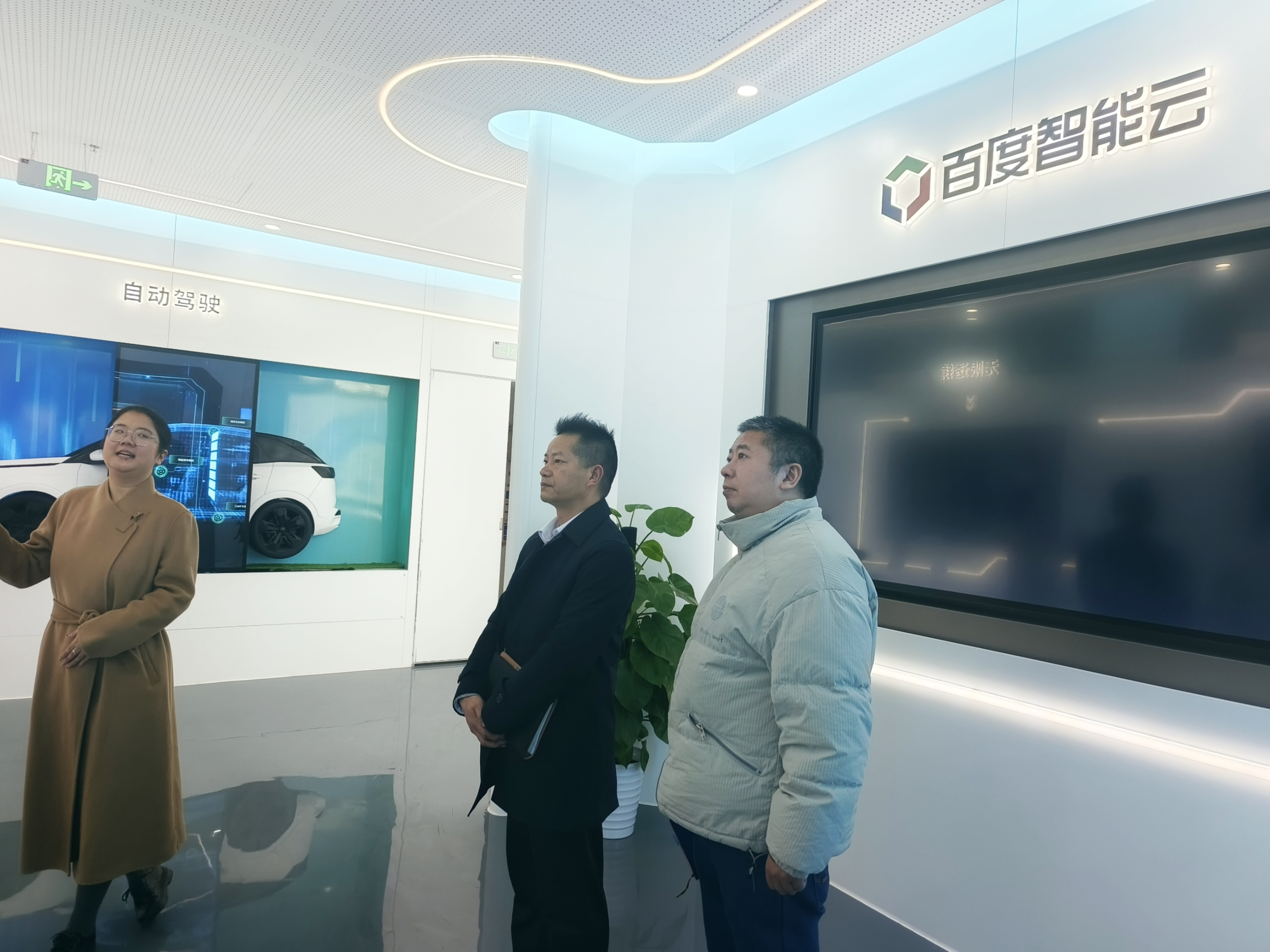 调研中,听取创新中心工作人员详细介绍了园区功能分布、体验场景应用及主要业务组成,重点介绍了以百度智能云千帆大模型平台为核心,汇聚文心大模型及大数据语言模型,提供AI开发工具与全流程服务的产业生态布局,初步形成了“龙头+配套”的人工智能产业集聚效应 。