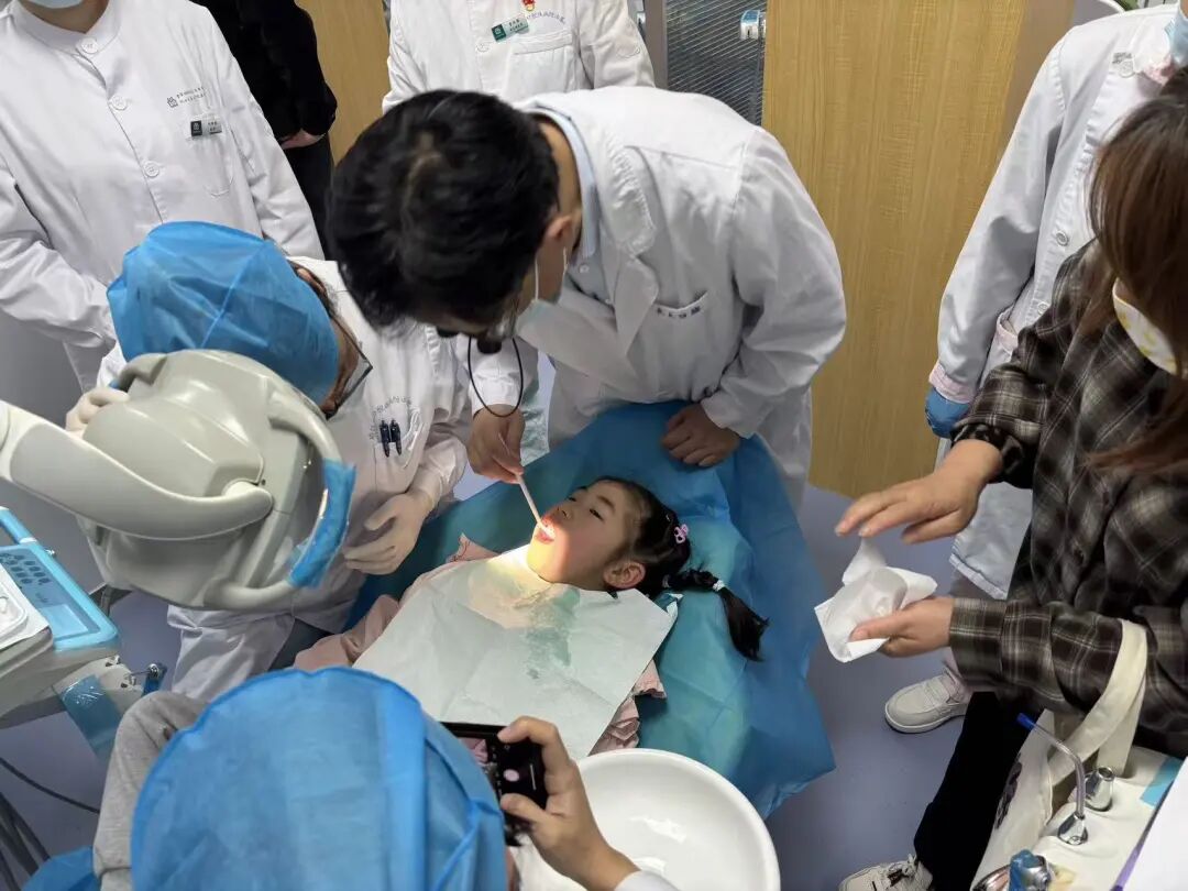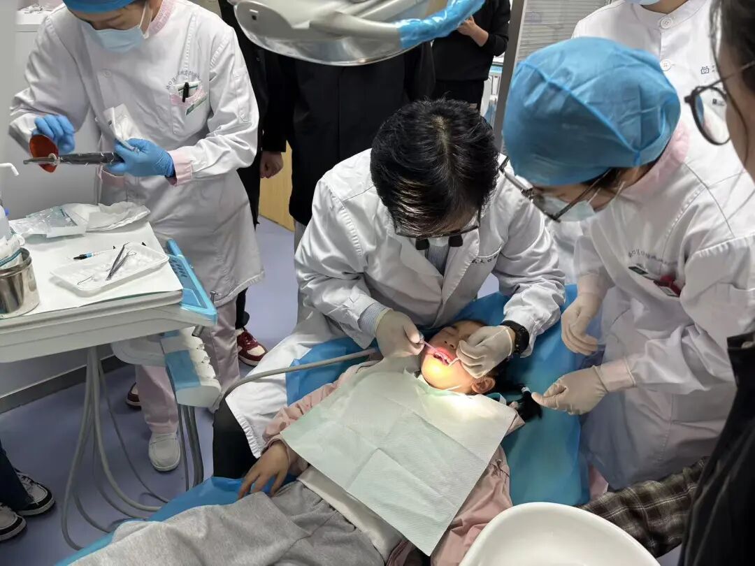 所有参训人员移步至中心口腔科治疗室,专家团队利用提前预约的适龄儿童作为教学案例,现场演示了窝沟封闭的完整操作流程。从器械准备、体位调整、术区隔离,到酸蚀、冲洗、干燥、涂布、固化、检查抛光,每一步都进行慢动作分解与要点强调。演示结束后,在专家“一对一”或“手把手”的指导下,部分学员进行了实际操作练习,专家现场纠正手法,确保每位学员都能将课堂知识转化为规范的动手能力。参训学员结合自身在项目执行中遇到的预约管理、家长沟通、复查安排、耗材使用等具体问题,踊跃提问。专家们一一给予了详尽、专业的解答,现场讨论气氛活跃,解决了诸多实际困惑。
