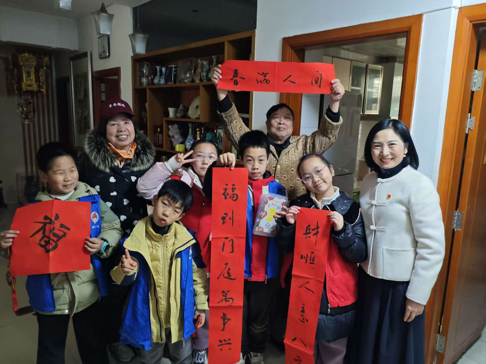 活动尾声,周书记带领青少年化身 “小小志愿者”,将新春对联送到辖区空巢老人家中。她以身作则引导孩子们为老人送上节日祝福,陪老人聊天谈心、整理家务,用实际行动传递关爱。老人们脸上洋溢着幸福笑容,对人大代表心系群众、密切联系群众的举措频频点赞。