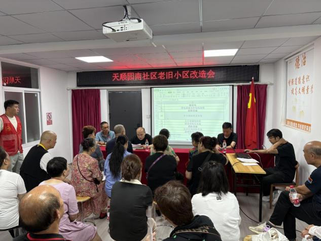 党建引领聚合力,问需于民定方案。长丰街道党工委联合天顺园南社区党委,以老旧小区改造为契机,将“我为群众办实事”落到实处,推行“党委统筹、网格落实、党员带头”的工作体系。党员代表化身“民意收集员”,通过逐户走访、召开居民协商座谈会等方式,深入楼栋倾听群众呼声,累计收集道路修缮、场地翻新、安防升级等急难愁盼问题30余条,征集改造建议65条。社区同步协同施工方多次召开协调会,逐一对接需求、细化优化方案,确保改造方向精准贴合居民期盼。