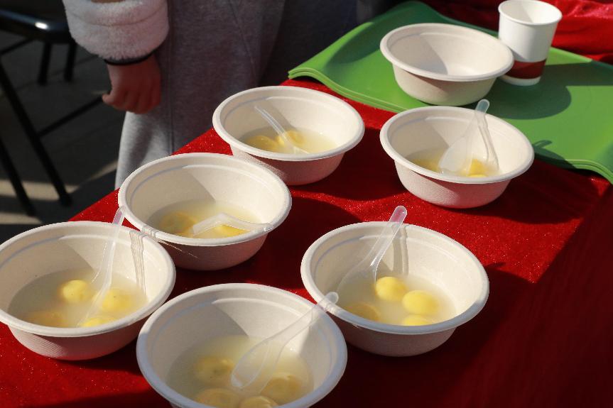 10时,丰富多彩的集市活动正式开启。文化体验区里,书法老师笔走龙蛇,一幅幅墨宝散发着传统文化的韵味;非遗文化体验区中,漆扇、蜡染等特色手工制作吸引了众多老人驻足参与,感受非遗魅力;元宵民俗游戏区里,“猜灯谜”摊位前围满了老人,大家在趣味互动中收获欢乐;湖北特色美食区中,汤圆、湖藕粉、黄陂元子、新农黄牛肉等湖北特色美食香气四溢,老人们一边品尝,一边分享着新春的喜悦。