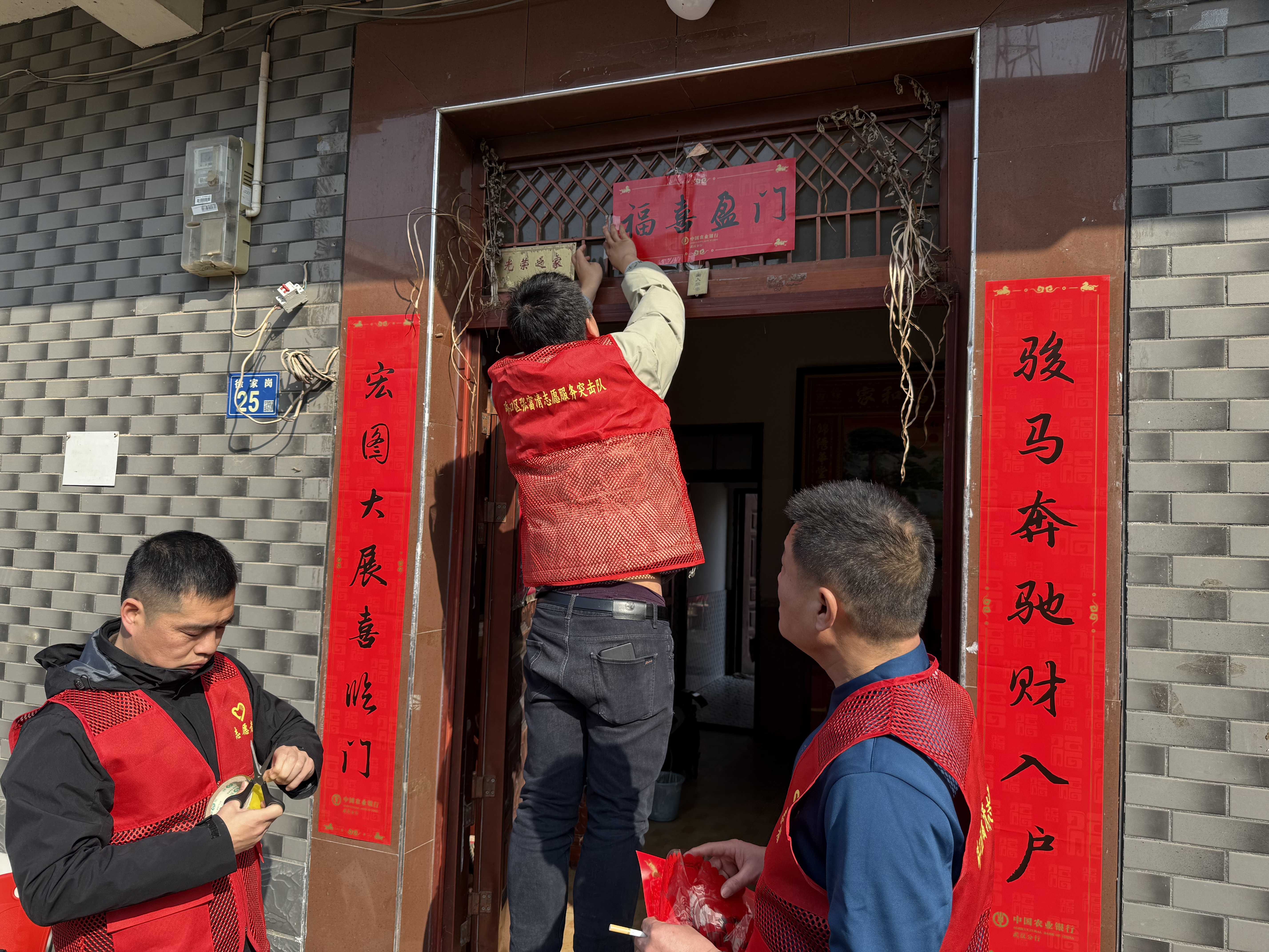 随后,硚口区张富清志愿服务突击队队员们主动帮助行动不便的退役老兵家庭张贴春联、贴福字,既增添了节日氛围,也传递了全社会对退役军人的尊崇与关爱。