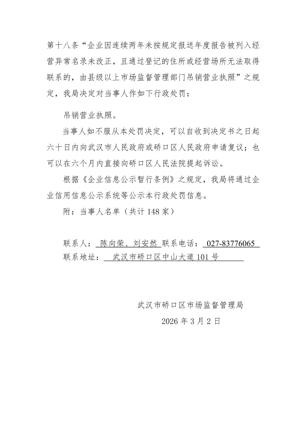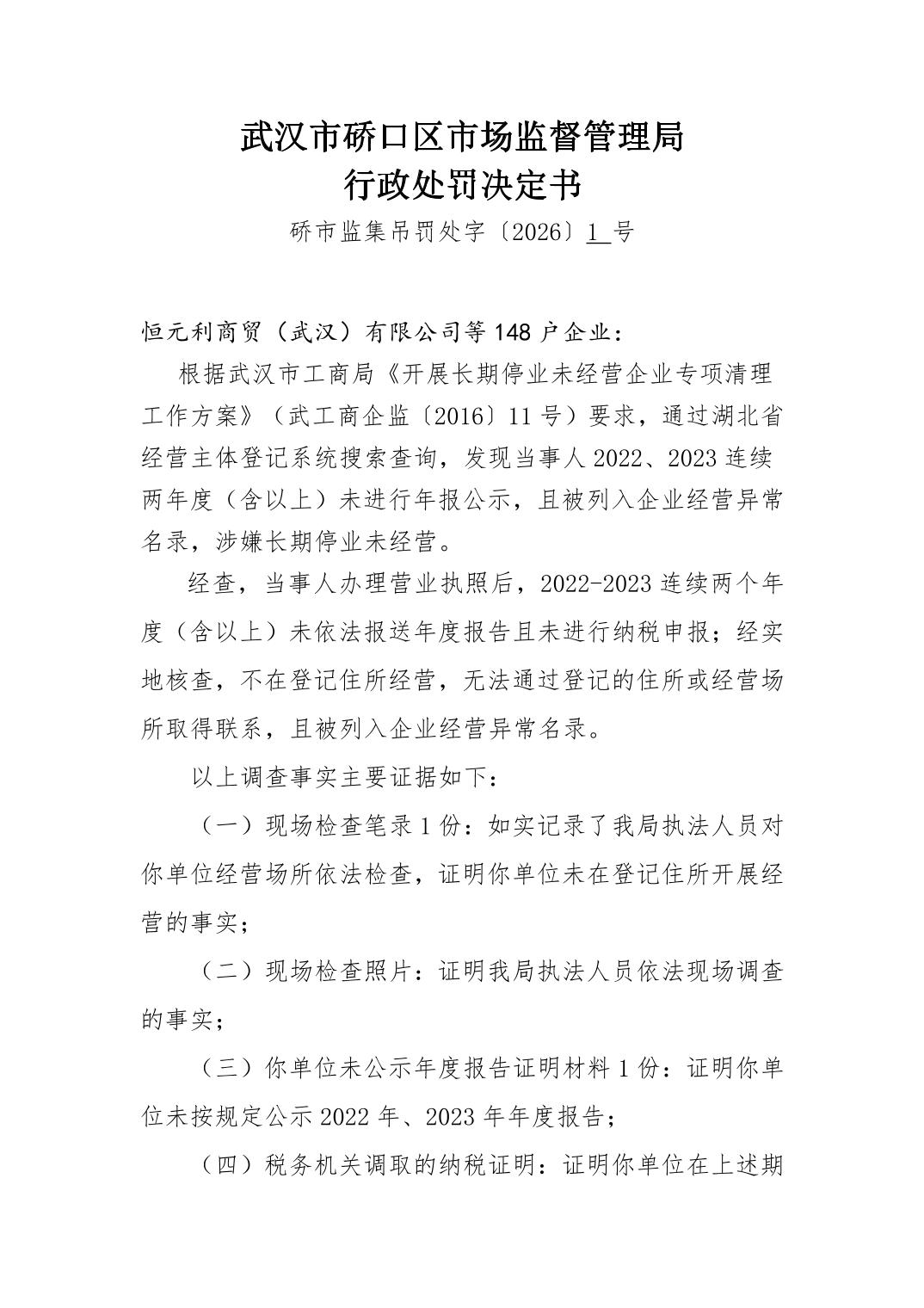 武汉市硚口区市场监督管理局行政处罚决定书