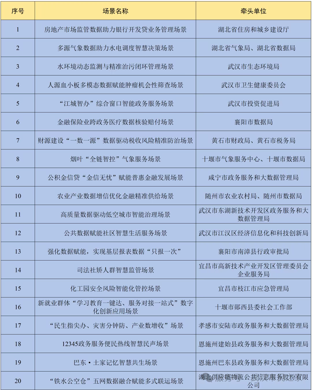 湖北省数据局公共数据“跑起来”重点联系服务示范场景清单