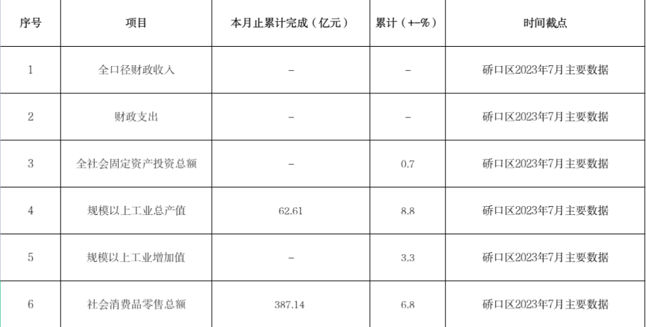 硚口区2023年1-7月份主要数据统计