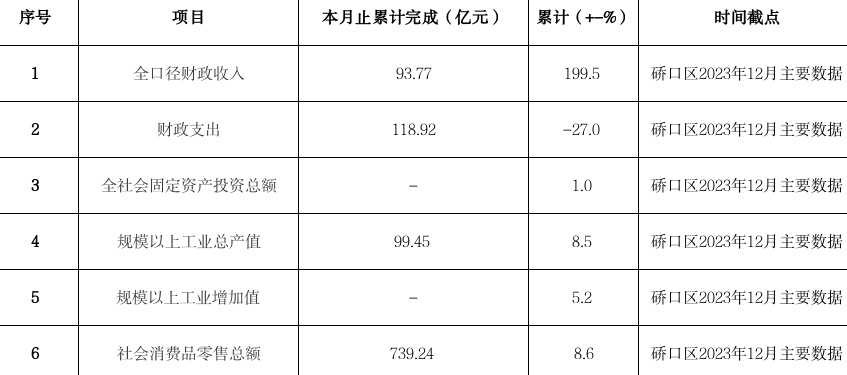 硚口区2023年1-12月份主要数据统计