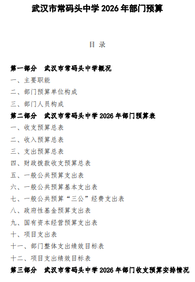 武汉市常码头中学2026年部门预算公开