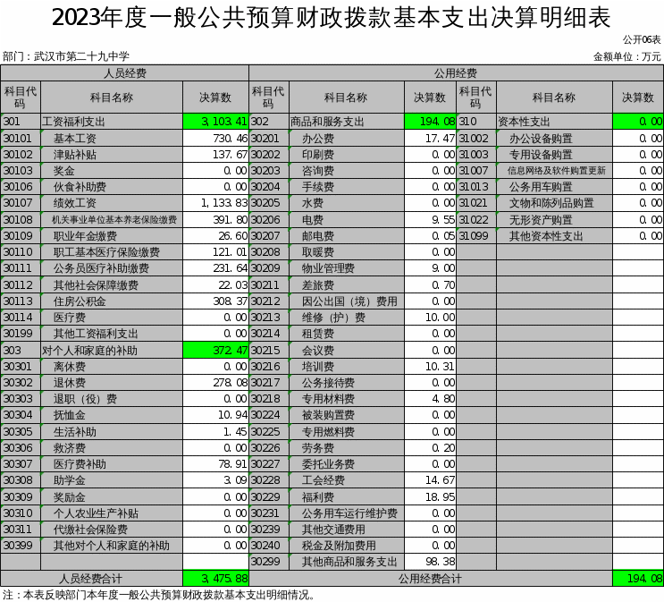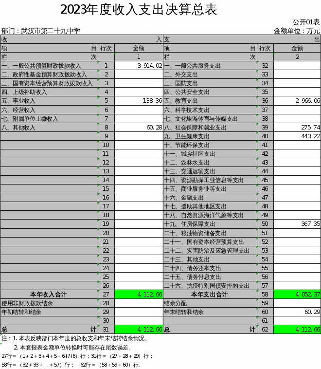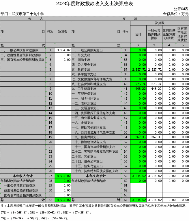 | 效力状态: | 有效 | 文   号: | 武汉市第二十九中学2023年度部门决算公开 |
