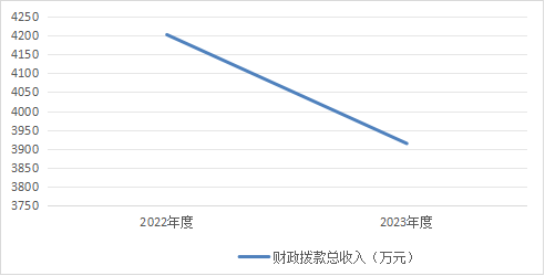 2023年度财政拨款收入中,一般公共预算财政拨款收入3,914.02万元,比2022年度决算数减少288.26万元。减少主要原因是人员本年度人员工资及事业单位离退休支出压减。政府性基金预算财政拨款收入0万元,比2022年度决算数减少407.39万元。减少主要原因是本年度无专项债支出安排。国有资本经营预算财政拨款收入0万元,比2022年度决算数增加0万元。