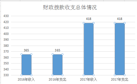 2017年度财政拨款收支总计418万元。与2016年相比,财政拨款收、支总计增加53万元,增加12.68%。主要原因是人员调入,人员支出经费增加。