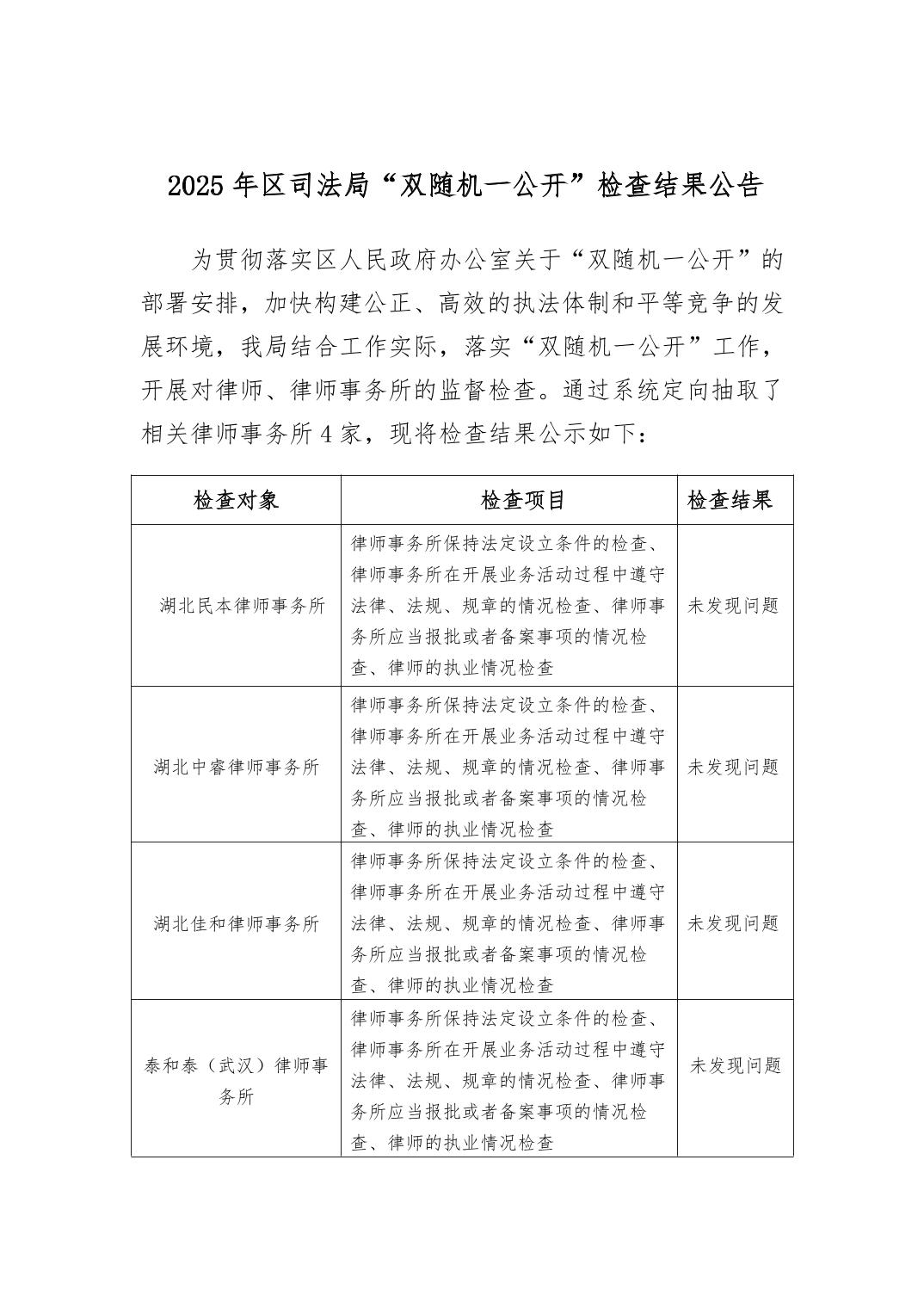 2025年区司法局“双随机一公开”检查结果公告.pdf