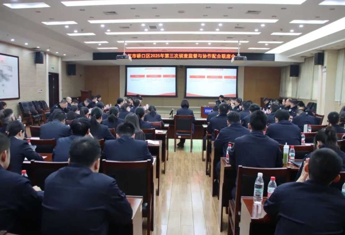 为进一步深化公安机关与检察机关在刑事案件办理中的协作配合,强化侦查监督实效,切实提升办案质效,11月6日,硚口区公安局与区检察院联合召开2025年度第三次公检联席会,围绕“侦查监督与协作配合”主题开展深入交流。区公安分局党委委员、政工室主任周琰,区检察院党组副书记、副检察长李勇,党组成员、副检察长刘琴,公检双方相关部门负责人及办案骨干参加会议。