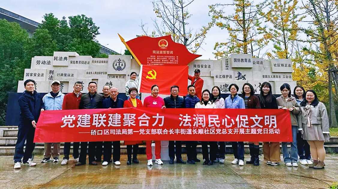为深入学习贯彻党的二十届四中全会精神,推动党建引领基层治理走深走实,11月10日,硚口区司法局第一党支部与长丰街道长顺社区党总支精心组织、联动联学,成功举办了一场以“党建联建聚合力 法润民心促文明”为主题的主题党日活动,通过“理论导学+阵地研学+实践悟学”三维模式,让党员在沉浸式学习中强化法治思维,在互动交流中凝聚治理共识,推动基层党建与基层法治深度融合、互促共进。
